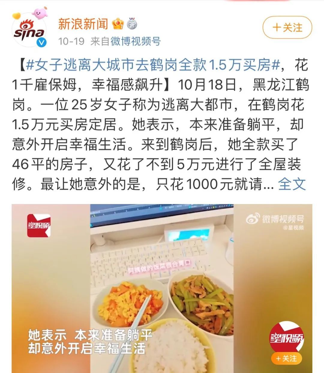 原来一位25岁的女生为了逃离大城市,花了1.5万元在鹤岗全款买了一套46平米的房子,从此过上了幸福的生活……