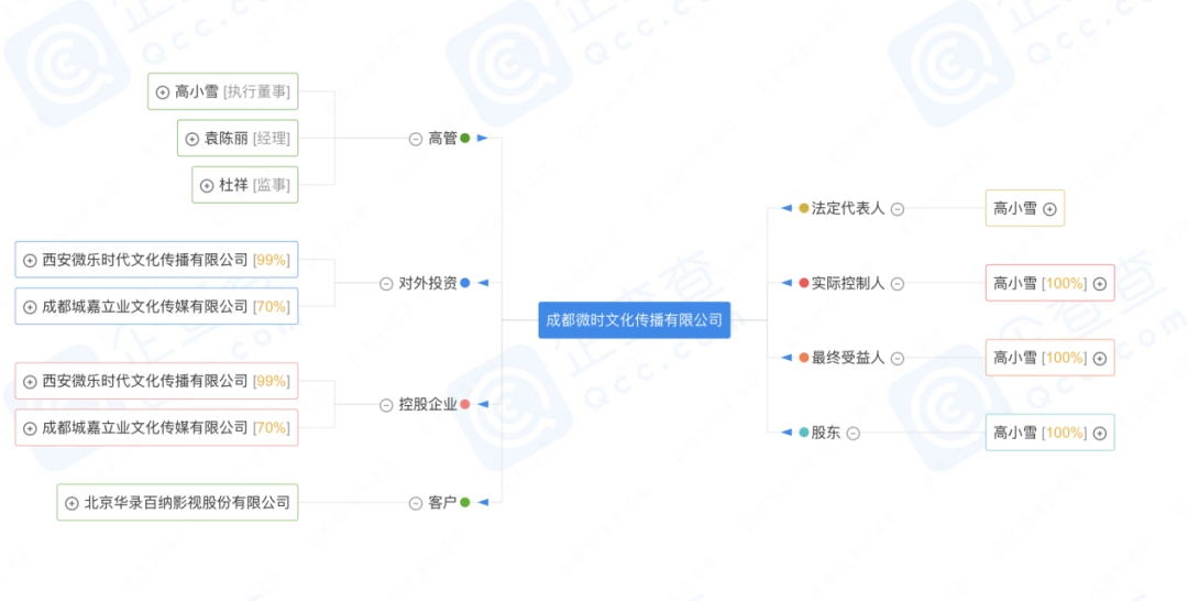 而成立于2019年的小微企业成都微时文化传播有限公司,也与百纳千成有着千丝万缕的关系,详情见下图。2022年5月,北京华录百纳影视股份有限公司更名为北京百纳千成影视股份有限公司。