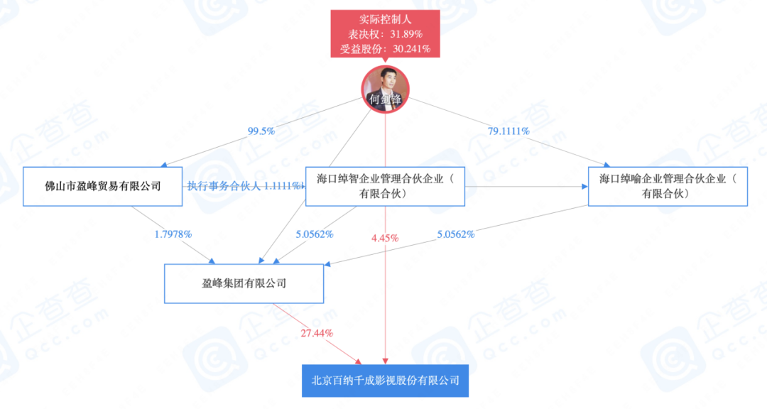 如今,盈峰集团的实际控制人何剑锋,也是百纳千成实际控制人。企查查显示,盈峰集团仅名义上持有的百纳千成的股份,便达27.44%,而何剑锋个人持股4.45%。最终何剑锋对百纳千成享有31.89%的表决权,以及30.241%的收益股份。