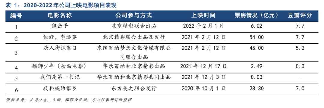 2002年成立,2012年以首个央企背景的影视传媒集团身份成功登陆A股市场,2018年积极响应央企混改加入盈峰集团,2022年正式更名为百纳千成。主控或参与的作品包括了《汉武大帝》《王贵与安娜》《咱们结婚吧》《金太狼的幸福生活》《雄狮少年》《上阳赋》《东宫》《你好,李焕英》《唐人街探案3》等叫好又叫座的剧集电影。