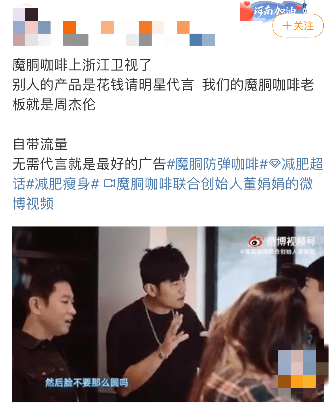 《周游记》是2020年上半年在浙江卫视播出的一档户外生活真人秀节目,周杰伦担任常驻嘉宾,这也是节目的主要卖点。在这档节目中,周杰伦及其朋友们多次对魔胴咖啡进行长时间的“走心”软性植入,广告用语频繁用到“增强饱腹感”等具有减肥导向的描述,至今也是经销商们用以拓展客源的主要广告素材。