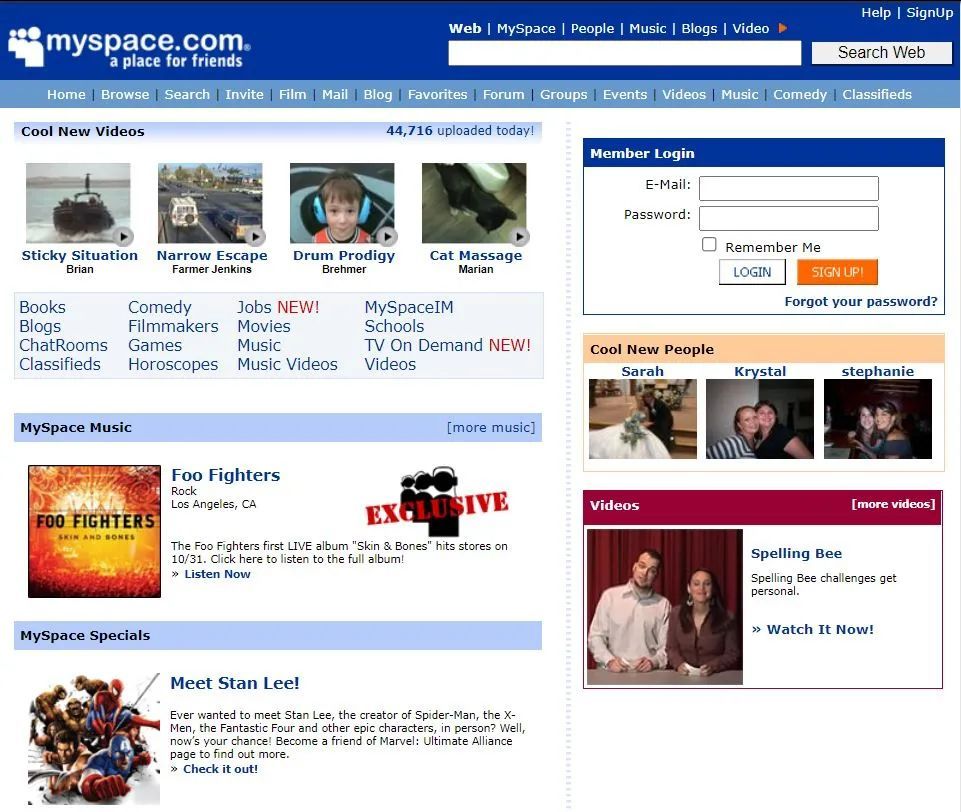 但当时也有一些托管博客的中心化节点,跟当代社交网络最相似的可能要数 Myspace 了。Myspace 在 2005 年被新闻集团以 5.8 亿美元收购,曾有望成为全球顶级社交网站。Myspace 巅峰时期的月独立访问为 7000 万,广告营收 6 亿美元。
