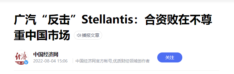 一般合资企业的消息,都是合资公司一起公布,Stellantis 集团单方面发布消息,试图逼广汽就范。