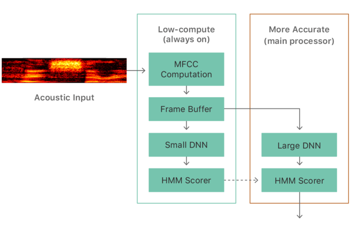 Hey Siri 唤醒的工作流程,绿色方框的即为 AOP 处理器