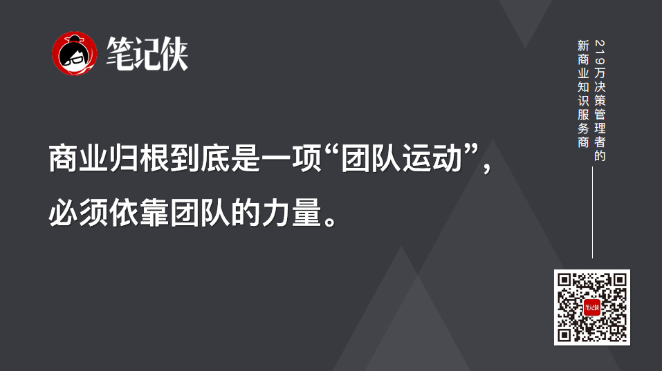 韦尔奇讲过一句话,总结得非常到位。商业归根到底是一项“团队运动”,必须依靠团队的力量。
