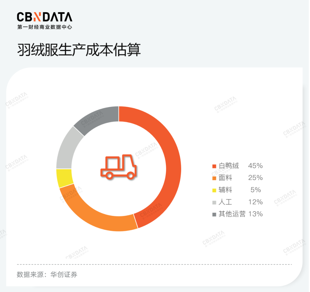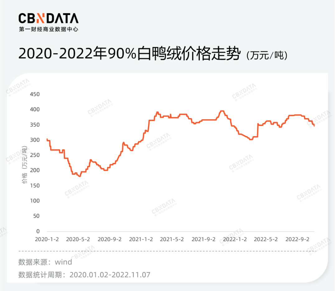 白鸭绒占羽绒服生产成本的比例高达45%,而在疫情发生以来,白鸭绒原料的价格持续走高。wind数据显示,2020年疫情发生以来,90%白鸭绒的最高单单价与最低单价的差值达到1.18倍。
