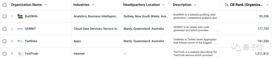 随后便给AboutUs索引中的每条记录都添加了一个BuiltWith.com链接,提供有关每个业务的BuiltWith信息。