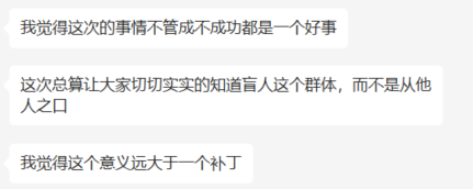 比如群里的视障玩家: 暗密、天黑请闭眼、少侠、梦寻、小恶魔等人,都跟小发聊了不少。