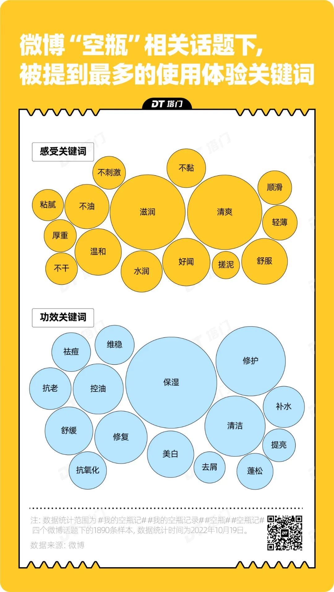 在微博空瓶相关话题下,滋润、清爽是被提到最多的感受关键词。滋润不粘腻,清爽不拔干是护肤品的最佳肤感,而粘腻、搓泥等差评体验,往往让消费者不愿与产品再续前缘,选择“不回购”。