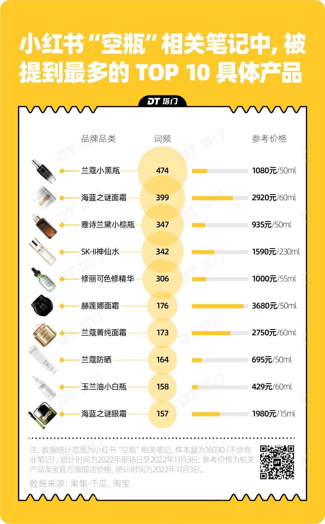 被用到空瓶并且拿出来晒的都是哪些产品和品牌?DT塔门决定通过空瓶数据来盘点一下,美妆界的硬通货都有谁。