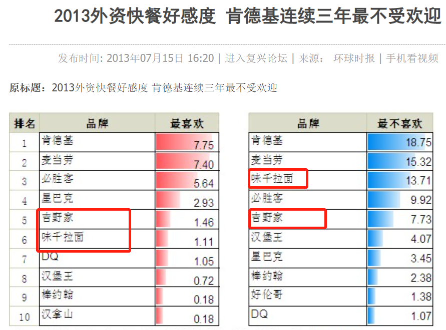 评选餐饮界红黑榜,时常和麦当劳肯德基等并列