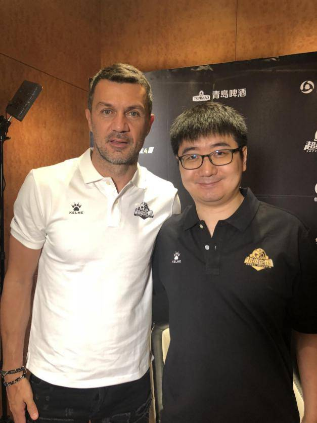 2018年超级企鹅足球名人赛,与马尔蒂尼合影,受访者供图