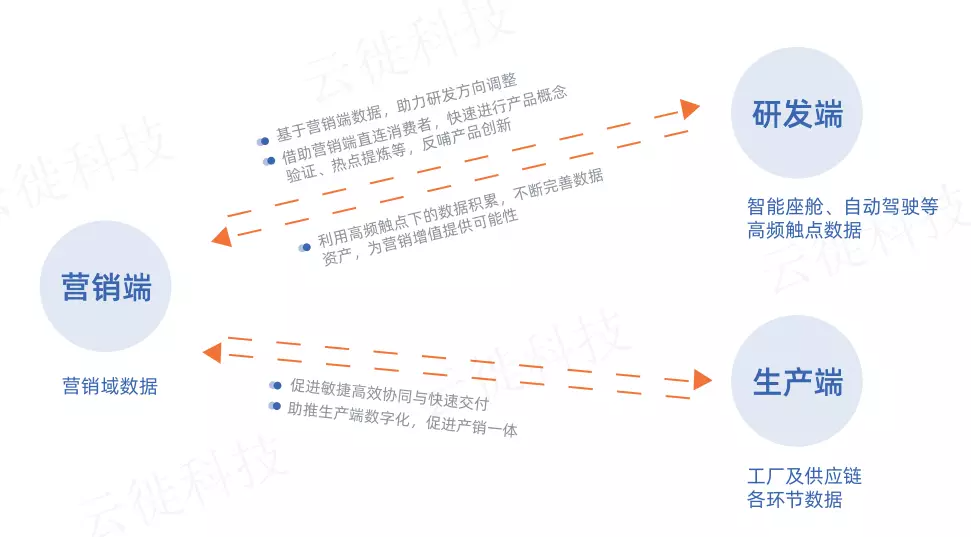同时,通过数字触点多端及多样化的场景应用,将更多的消费者数据资产沉淀在车企内部,反过来助力车企洞察、了解并挖掘不同消费者群体的需求,反哺产品创新与研发,从而创造更多的企业价值。