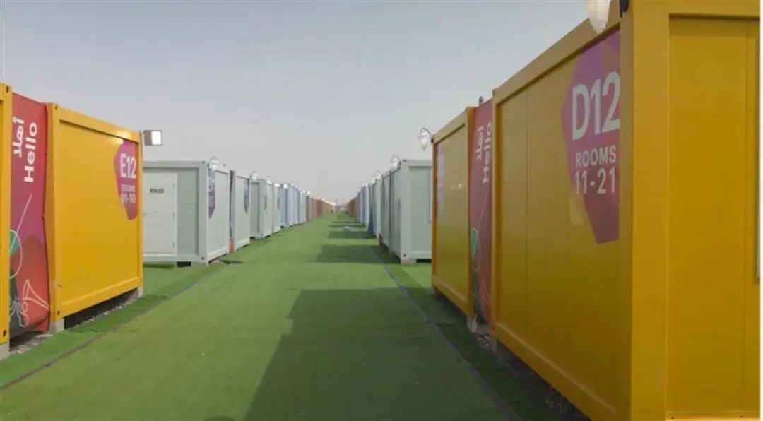 2022卡塔尔世界杯历史上国土面积最小的东道主,蜂拥而来的游客超出当地的承受范围。为了增加住宿供应,卡塔尔利用了一切可以利用的资源,比如民宿、公寓等,在离多哈机场不远的区域,还修建起了6000个类似集装箱样式的板房,也可以供球迷入住,设置有地铁站、公交车站、公共看球广场、临时餐厅、便利店等设施来保障球迷的交通和生活。