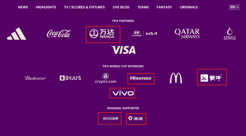 1.万达集团是首个FIFA国际足联顶级合作伙伴,也是卡塔尔世界杯最大中国赞助商