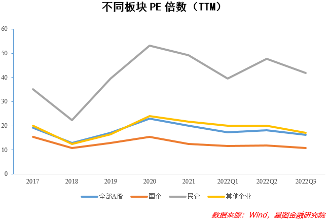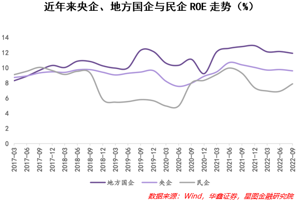 对比不同属性企业的ROE(净资产收益率)可以发现,自2017年以来,央企和地方国企的ROE总体上明显要比民企更高且更加稳健,彰显出国有企业盈利方面的强大韧性以及抗风险能力的出色,同时也凸显出国有企业的“稳定器”和“压舱石”作用。理论上讲,高ROE企业应当给予相匹配的高PE估值,但目前国企的估值水平又明显低于民企,说明当前国企的估值并没有充分反映其价值,属于被低估的板块,理应得到修复。