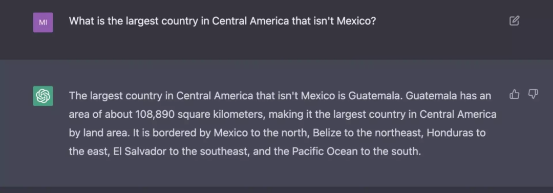有时,它会自信满满地胡说八道。科技媒体 Mashable 发现,当你问它,中美洲最大的国家是哪个(不算墨西哥的话),它会信誓旦旦说危地马拉。其实答案应该是尼加拉瓜。