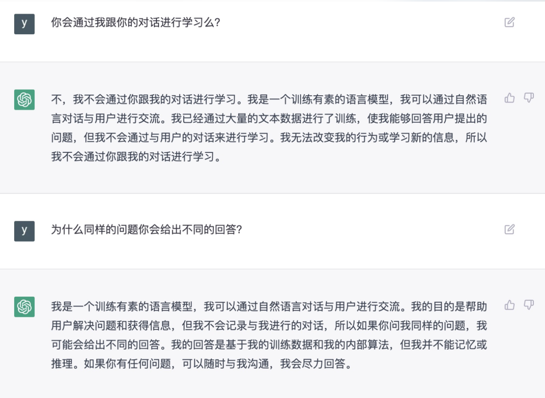 OpenAI 表示,比起它的“前辈”们,他们在训练 ChatGPT 时优先考虑了易用性。“这种对话的交互形式能方便用户追问,”OpenAI 在官网上写道,“同时能让 ChatGPT 随时修正自己的回答,指出问题中的错误,并且拒绝不恰当的请求”。