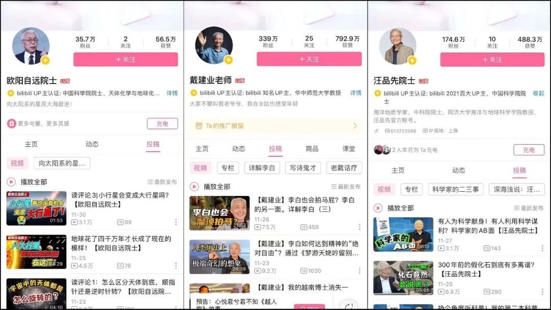 他们在B站上发布的内容多以知识科普为主,弹幕上诸如“谢谢爷爷科普!”“爷爷好”“老师好”“涨知识了”等语句屡屡出现。