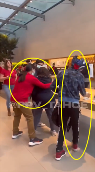 但是苹果工作人员说:“大家退后”“让他们走”。