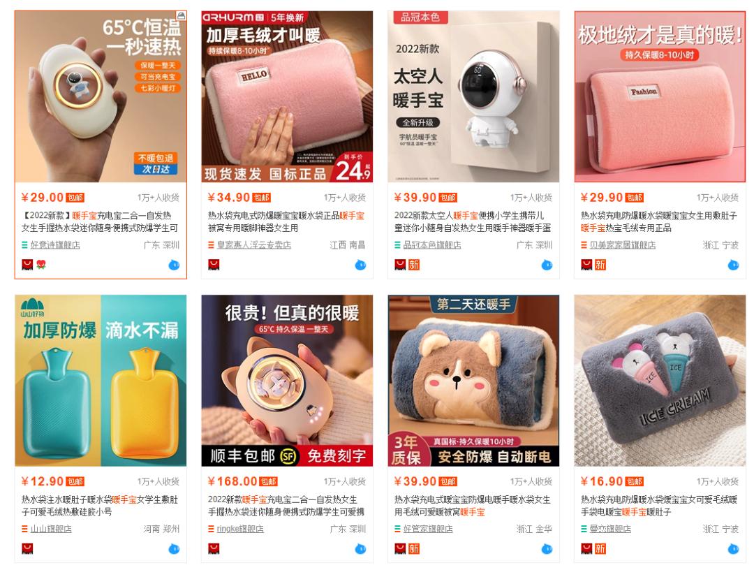 从暖手宝这样一件小产品中,其实也反映了当前小家电市场的现实乱象。第一,目前有不少厂家在生产着各种三无、假冒伪劣产品,以次充好欺骗消费者。第二,小家电市场没有形成相应的行业规范,而且多数产品生产门槛极低,很难对这些产品进行全面的检验筛查,让产品有机会能搬上市场进行销售。第三,某些平台或商家瞄准多数消费者喜欢“占小便宜”的心理,以免费送、一元购,或其他促销形式向消费者兜售这类商品,给用户的安全埋下巨大隐患。在淘宝上搜索暖手宝并以销量排序,出现基本都是二三十块的产品。