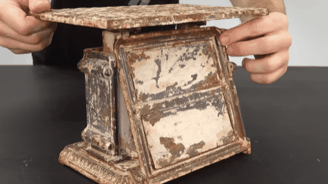 除了这些老玩具,老哥也会对一些上个世纪的老物件也都进行了一个精细的修复,像这台 1900 年的老体重秤。