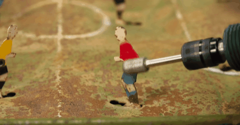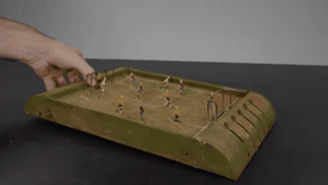 首先登场的这位需要修复的选手:是一位就算拿去当废铜烂铁卖了,估计也值不了几个铜板的足球桌游玩具。