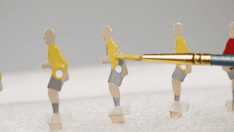 然后就是考验手艺活的时候了,老哥要把这些完美 1:1 复刻出来的小零件安装到足球台上,然后再对整个台面进行一个打磨抛光的处理。