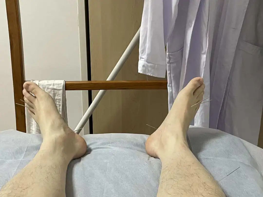 当然,针灸的过程也是十分“酸爽”。特别是上周最后一个疗程时,针扎了脚底板位置,疼得我眼泪都要出来了。中途往肚脐眼上针,我可能是动了一下导致“走针”,那个位置青淤了好几天。