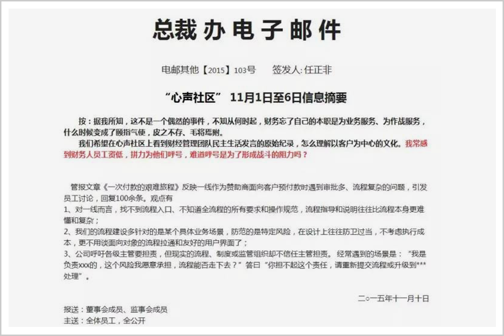 看到这篇文章的任正非,盛怒之下,直接以总裁办电子邮件的方式,向全体员工怒批财务体系: