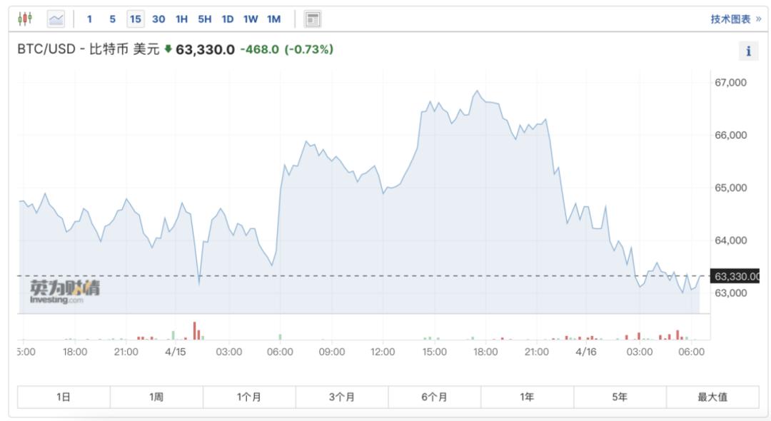 与此同时,虚拟货币市场也集体下跌。美股开盘后,比特币市场加速下跌,一度跌破整数关口63000美元,较日下跌超过4000美元,暴跌近7%。