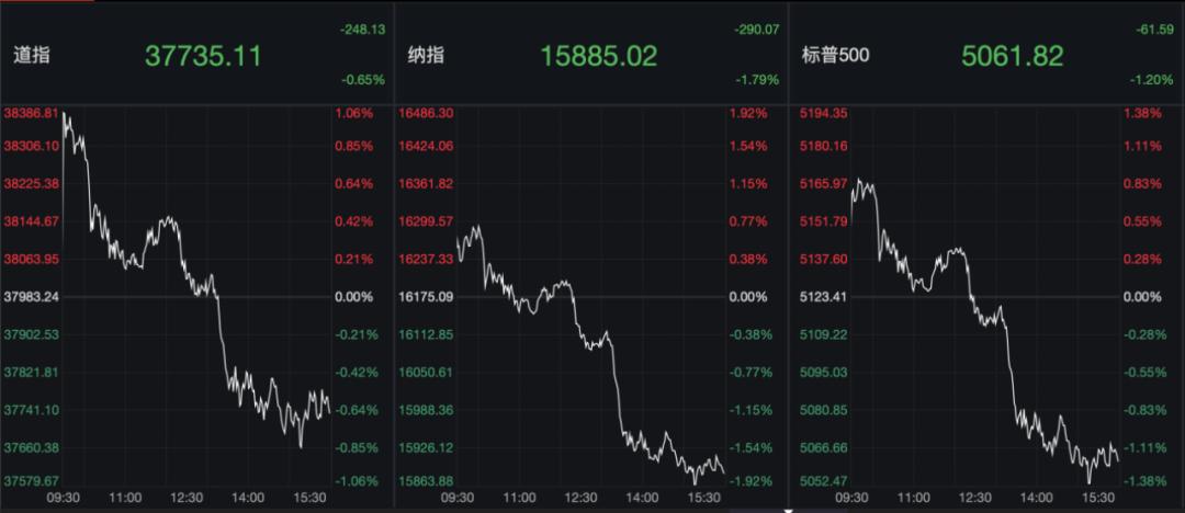 上述言论发表后,进一步加剧了全球市场的避险情绪。在美国股市中,三大指数在一夜之间高开后大幅下跌。截至收盘,纳斯达克综合指数下跌1.79%,创2月13日美国CPI公布至今最大跌幅;标准普尔500指数暴跌1.2%,连续两天下跌超过1%;道指下跌0.65%。