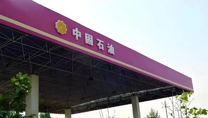 白色、暗红色和浅橙色通常是中国石油加油站的罩棚檐面和标识颜色。