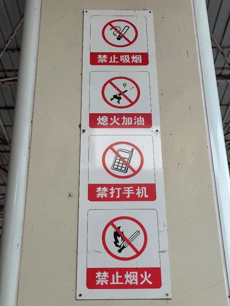 罩棚支柱为方柱,柱体颜色为乳白色,下部为银灰色。总共有四个支柱警示标志,采用统一规格制作。