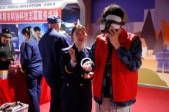 随后,宣传员指导参与者逃离VR模拟火灾现场,体验者戴上VR眼镜,按要求找到路线,顺利穿越“火灾现场”,正确逃生。