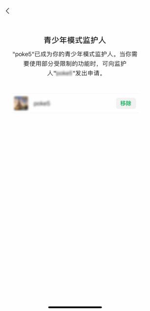 开启微信青少年模式后,用户可以绑定微信青少年模式的监护人,未成年人可以向监护人发起特定的微信官方账号文章、小程序、链接的临时浏览申请,以及增加视频号使用时间的临时申请。监护人可以通过个人微信账号远程同意授权。