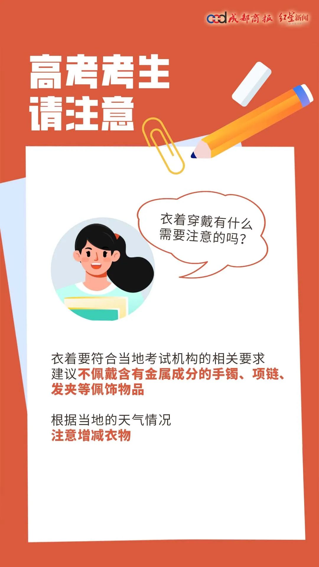 四川天气方面,高考期间没有大的天气过程,整体天气比较适合。川西高原和攀西有阵雨,主要是小到中雨。考生和家长要注意带雨具,提前出门,注意交通安全。