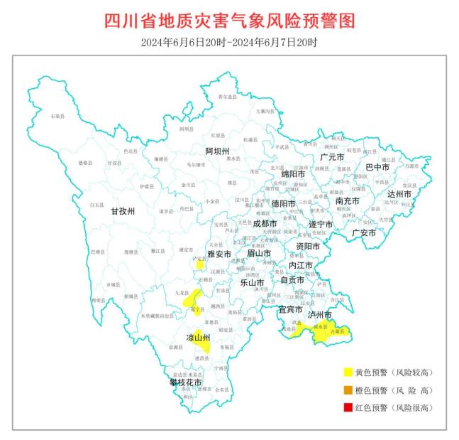 全省大部分地区都有分散的阵雨或雷雨,其中川西高原和攀西地区有中雨,全省地质灾害风险总体较低。