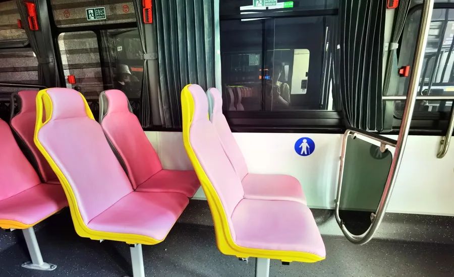 据网友记载,42路是6月1日儿童节“喜提”的新车。第一批有6辆车,其中一辆也被“装饰”成了6月1日的彩绘车身。线上新车7米,比最大的“白金刚”短5米。加上湖蓝色的车身,里面只有12个座位,还是粉色的,充满了可爱的味道。上线当天,很多公交爱好者拍照“打卡”。