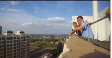 警察同志,这儿有人跳楼!”警车疾驰而来,西郊派出所民警第一时间赶到现场,冲上屋顶。