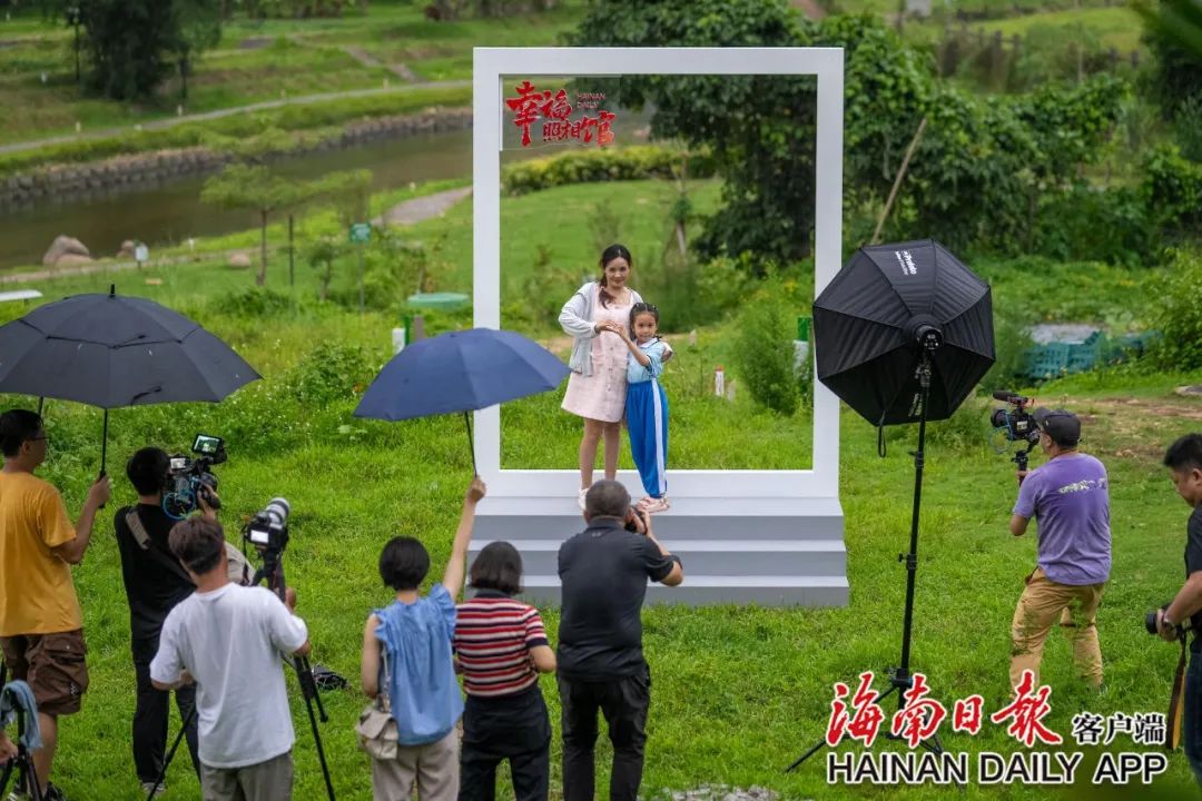 “咔嚓!”卓熙媛和她的母亲紧紧拥抱在一起,在镜头前留下了宝贵的时刻。图中,以山为幕,以绿为镜,母女站在刻有“幸福照相馆”字样的相框前相视一笑。不久前,卓熙媛作为五指山黎苗童声合唱团的一员,去法国巴黎唱了一首美妙的歌。