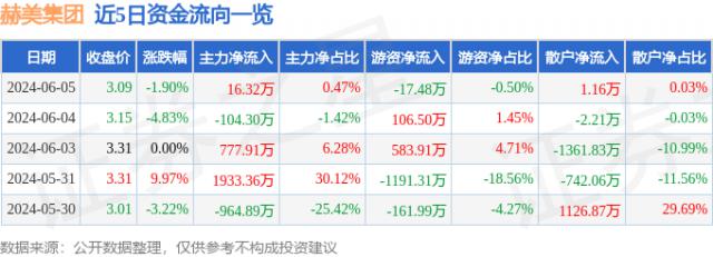 6 月 5 在日资金流入数据方面,主要资金净流入 16.32 一万元左右,约占成交额 游资资金净流出0.47% 17.48 一万元左右,约占成交额 散户资金净流入0.5% 1.16 一万元左右,约占成交额 0.03%。