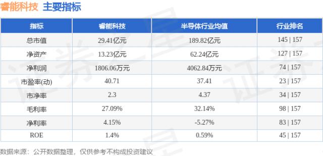 以下是瑞能科技的主要指标和行业排名: