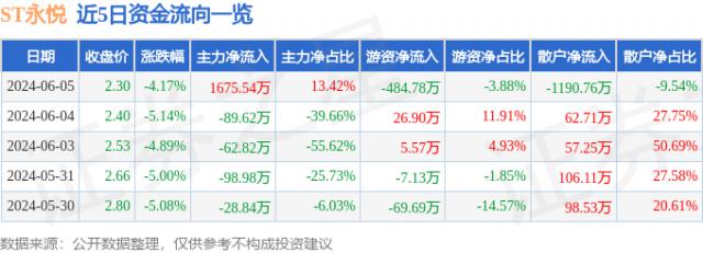 变动快报:6月6日9:35,ST永悦(603879)触及跌停板。