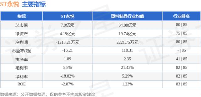 ST 永悦的主要指标和行业排名如下: