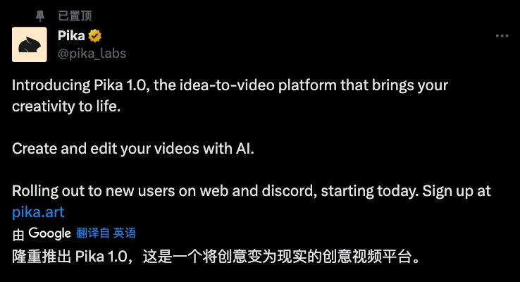 Pika 在官方介绍中,Labs写道: 他说:“通过提供易于使用、功能强大的工具,可以激发更多人的创造性潜能,帮助他们将想法转化为视觉作品。 ”
