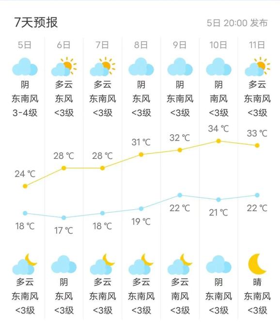 六月十日阴天,22~34℃;