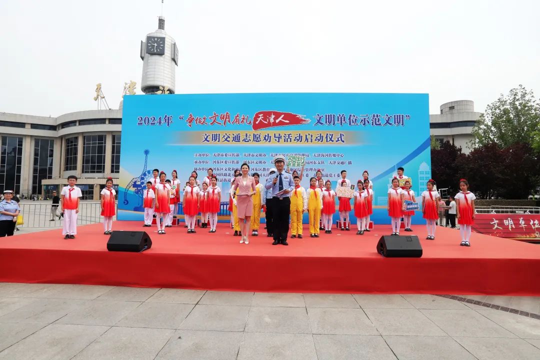 6月5日上午,由市委宣传部、市文明办、市公安交通管理局、海河传媒中心主办,河东区委宣传部、河东区文明办、交警河东支队、天津交通广播承办的“争当文明礼貌天津人——文明单位示范文明”文明交通志愿劝导活动启动仪式在天津站前广场举行。即日起,来自全市千家文明单位的1万名志愿者将陆续上路进行志愿劝导。利用交通文明帮助城市文明,以规范的秩序展现津城之美,营造全社会共创、共治、共享文明交通的良好氛围。