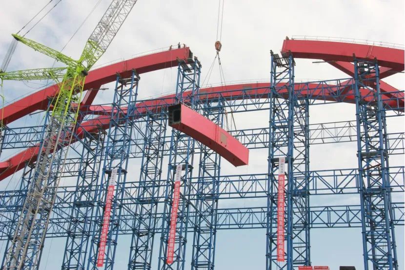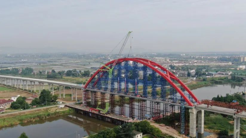 6月3日,随着最后一节拱肋吊装完成,引江济淮(安徽段)引江济巢白湖大桥项目主桥拱肋成功合龙,意味着项目建设取得突破,为后续主桥吊杆安装和桥面施工奠定了坚实的基础。作为合肥南部水陆交通网络的重要“关节”,该项目建成后,将改善交通条件,对促进区域经济发展具有重要意义。