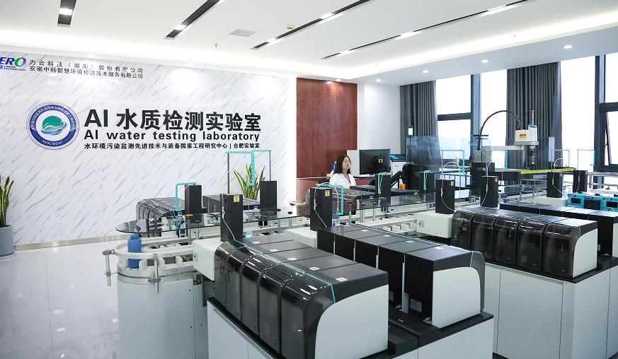 一批高新技术企业聚集在“中国环境谷”中进行水处理。在中科智能环境检测技术服务有限公司合肥AI水质自动检测中心,记者看到,现在已经实现了全自动检测。一只机械臂从放置区抓起从十五里河采集的河流样品,自动输送到水质监测的全自动“生产线”。通过优化算法,效率是传统实验室人工分析的40到50倍。当前,该系统还对阳澄湖、白洋淀等河湖的水样进行了分析,指导当地环保部门有针对性地采取治理措施。